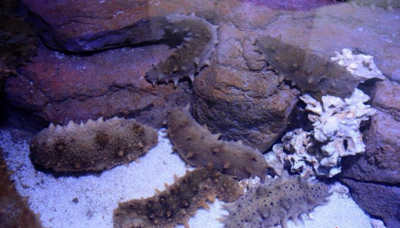 馆内收集了全球上百种海参标本及简介,可供参观者辨别、学习。其中最珍贵的要数2013年蛟龙号从水下4994米打捞上来的深海海参标本;还可通过互动球幕装置,点击查询世界上主要的海参生活区域等。